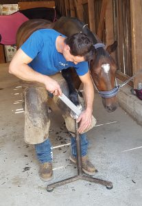 Ein Hufschmied mit einem großem Herzen für schwerst-mehrfach behinderte Kinder: ROBERT Königsberger beschneidet die Hufe von Therapiepony Verci ehrenamtlich.